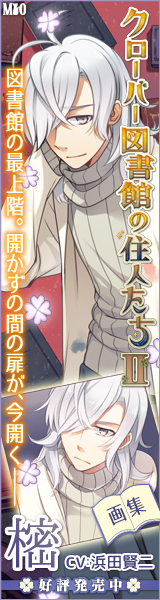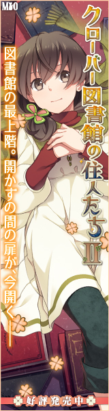 <a href="http://www.mi-o.jp/product/clover_library/index.html" target="_blank" title="澪(MIO)『クローバー図書館の住人たちⅡ』"><img src="http://www.mi-o.jp/product/clover_library/special/ouen002_riku.jpg" alt="澪(MIO)『クローバー図書館の住人たちⅡ』" width="180" height="180" border="0" /></a>