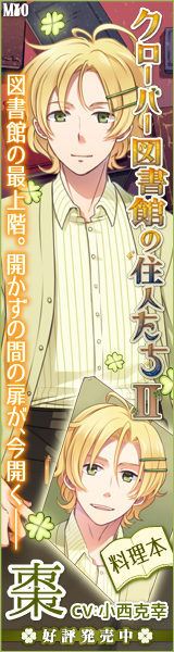 <a href="http://www.mi-o.jp/product/clover_library/index.html" target="_blank" title="澪(MIO)『クローバー図書館の住人たちⅡ』"><img src="http://www.mi-o.jp/product/clover_library/special/ouen001_syu.jpg" alt="澪(MIO)『クローバー図書館の住人たちⅡ』" width="200" height="40" border="0" /></a>