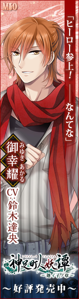 <a href="http://www.mi-o.jp/product/koutari_1/index.html" target="_blank" title="澪(MIO)『神足町人妖譚 ~迷イ子ノ章~』"><img src="http://www.mi-o.jp/product/koutari_1/special/banner/koutari02_akaru.jpg" alt="澪(MIO)『神足町人妖譚 ~迷イ子ノ章~』" title="澪(MIO)『神足町人妖譚 ~迷イ子ノ章~』" width="180" height="180" border="0" /></a>